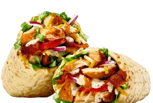 Featuring tender rotisserie-style chicken, melted cheese, savory bacon, and fresh, crunchy vegetables, this hearty wrap offers a customizable meal that perfectly matches individual preferences.
