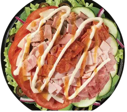 Crafted to conquer even the biggest appetite, The Beast bowl delivers an impressive half-pound of premium meats, spicy pepperoni, Genoa salami, oven-roasted turkey, Black Forest ham, and tender USDA Choice roast beef. Paired with provolone and an assortment of fresh vegetables, including tomatoes, black olives, red onions, crunchy green peppers, and sliced cucumbers, this powerhouse meal is served over a fresh bed of spinach and lettuce. A creamy mayo drizzle and tangy MVP Parmesan Vinaigrette® bring all the flavors together, creating a truly mouth-watering bowl.